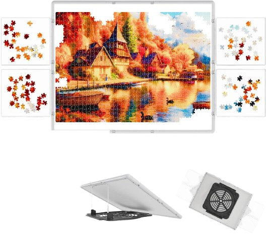 A 1500 Pieces Puzzle Board is a large, sturdy workspace designed specifically to accommodate complex jigsaw puzzles with thousands of pieces. Made from durable, non-slip materials, it keeps puzzle pieces securely in place while allowing easy movement and organization. Many boards feature rolling or foldable sections that let you store unfinished puzzles safely without losing progress, as well as integrated sorting trays to separate edge pieces, colors, or patterns for faster assembly. Its spacious surface provides ample room to work comfortably, whether at a table or on the floor. Lightweight yet stable, the puzzle board is ideal for hobbyists and enthusiasts who enjoy challenging puzzles, making assembly more organized, enjoyable, and mess-free.