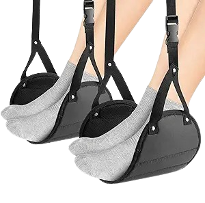 An airplane foot hammock is a compact, portable travel accessory designed to elevate your feet and legs for added comfort during long flights. It typically hangs from the tray table using adjustable straps and features a padded sling that supports your feet, helping reduce pressure, improve circulation, and minimize fatigue or swelling. Lightweight and easy to pack, a foot hammock provides a more ergonomic sitting position, making travel more relaxing whether you’re working, resting, or trying to sleep onboard.An airplane foot hammock is a smart, ergonomic travel accessory crafted to make long journeys more comfortable by lifting your feet and legs into a relaxed position. Made with soft yet durable materials, it features adjustable straps that loop around the tray table arms and a cushioned platform that cradles your feet. By elevating your legs, it helps reduce stiffness, swelling, and lower-back strain—common issues during extended periods of sitting. Lightweight, foldable, and easy to carry in any travel bag, the foot hammock is ideal for frequent flyers, business travelers, and anyone looking to improve in-flight comfort. It can also be used on trains, buses, or even at your desk, offering versatile support wherever you go.