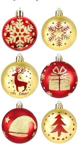 A Christmas decoration ball, also known as a bauble, is a round ornament used to adorn Christmas trees during the festive season. Traditionally made of glass, it now comes in materials like plastic, wood, or metal for durability and style. These ornaments are often brightly colored, shiny, or glittery, reflecting the glow of Christmas lights. Some are transparent with tiny decorations inside, while others feature intricate hand-painted designs. They symbolize joy, celebration, and the spirit of giving. Baubles come in various sizes, from tiny accents to large statement pieces. Many families personalize them with names or photos to mark special memories. Whether classic red, golden, or modern metallic, they add warmth and sparkle to holiday décor. Together, they transform a simple tree into a glowing centerpiece of Christmas cheer.