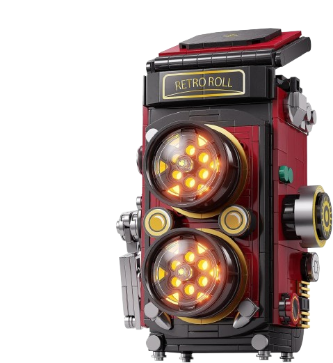 Once completed, the finished retro camera model makes a striking decorative piece for shelves, desks, or display cases, celebrating the nostalgic charm of analog photography. It’s ideal for photography lovers, building enthusiasts, or anyone who appreciates stylish, retro-inspired décor. Some sets may offer movable parts—like a rotating lens or adjustable dials—adding an extra layer of interactivity to the finished build. Overall, a Retro Camera Building Blocks Set blends creative assembly with classic design, making it a fun and eye-catching project for builders of various ages.