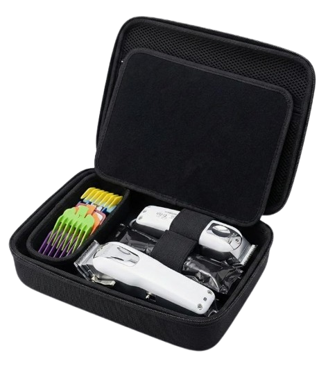 This trimmer storage organizer is designed to keep your grooming tools neatly arranged and always within reach. It provides dedicated compartments for hair trimmers, clippers, guards, scissors, combs, chargers, and accessories, helping prevent clutter and damage. Made from durable, easy-to-clean material, the organizer ensures long-lasting use while maintaining a clean, professional look on your countertop or shelf. Its compact, space-saving design makes it ideal for both home bathrooms and barber shops, allowing you to store everything in one place for quick, hassle-free grooming sessions.